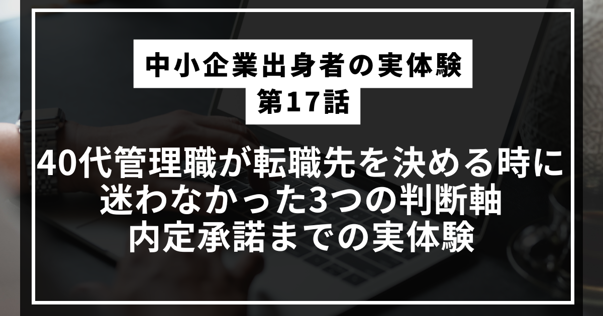 ▶︎ 40代管理職の転職体験談(全話まとめ)|中小企業から大手企業へ転職できた全記録