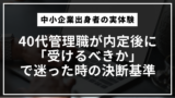 40代管理職として内定をもらった後に実際に悩んだこと、考えたこと、そして最終的にどう決断したのかを、リアルに書いていきます。