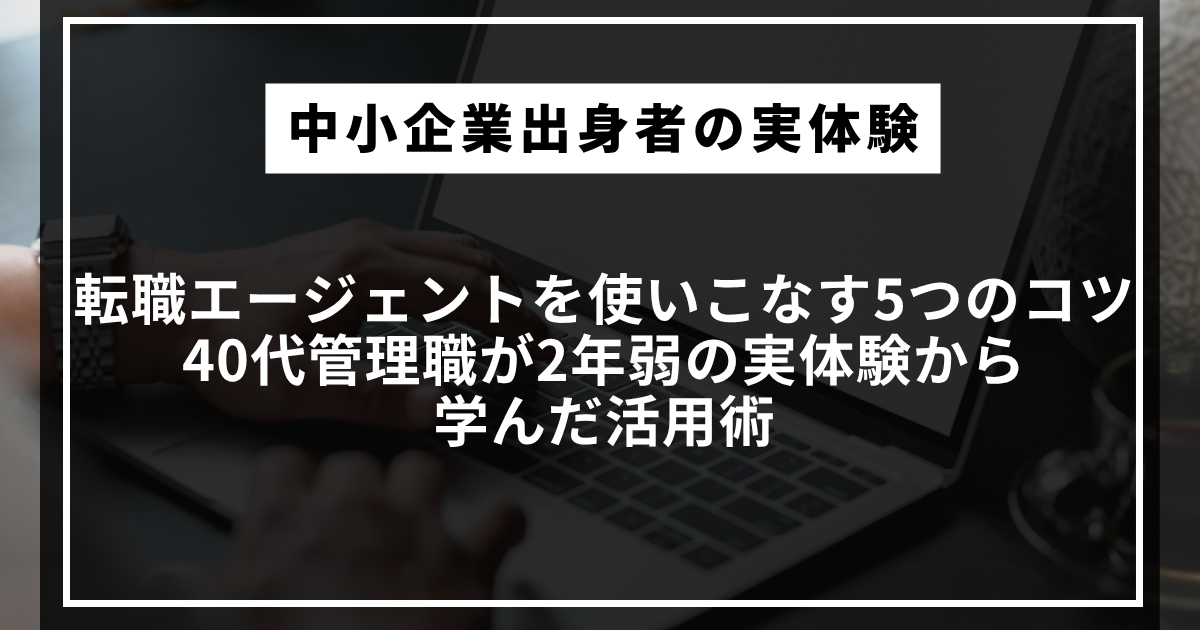 40代管理職の転職活動は、時間も体力も限られている。エージェントをうまく使いこなして、効率よく動いてほしい。